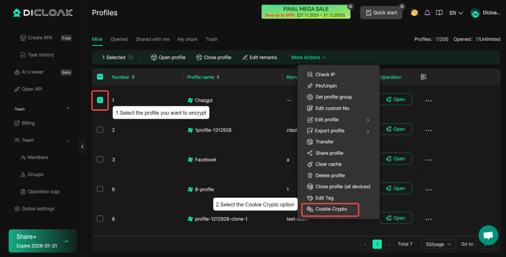 The Cookie Encryption enhancement prohibits all members from viewing and copying Cookies in profiles, and performs comprehensive encryption upgrade on Cookie content to avoid your tool accounts being stolen.