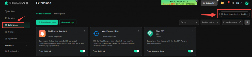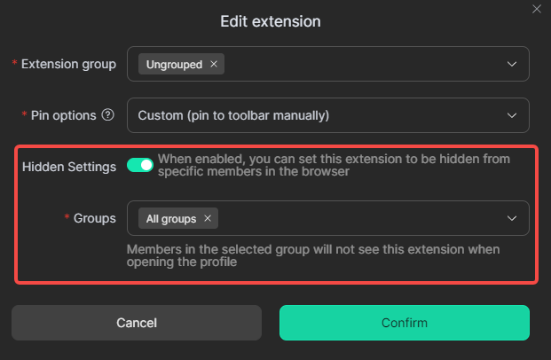 - Hide the display of extension tools on webpages and prevent members from accessing and editing extension management pages.