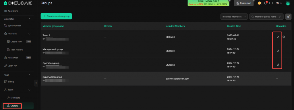 - Go to the member list to assign the corresponding member group to the members and save the settings.