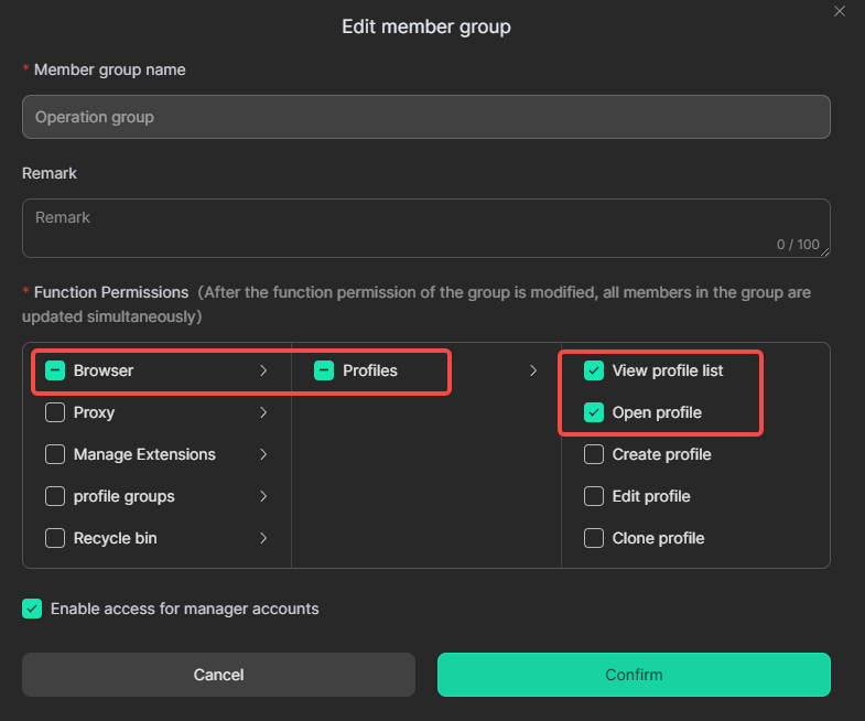 Assign specific browser features to members to avoid unauthorized actions. Here’s how to set it up: