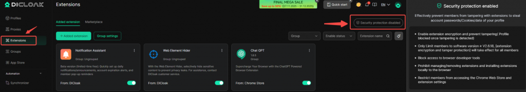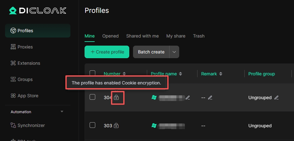- Encrypt cookie information in the browser profiles to prevent members from stealing login cookies using improper methods. (You can contact DICloak’s customer support to enable this feature.)