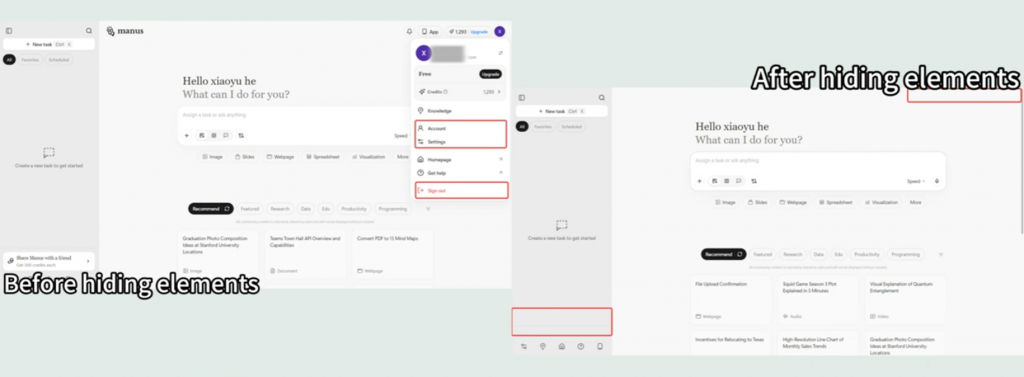 - Use the Web Element Hider extension tool to hide webpage elements containing sensitive account information.