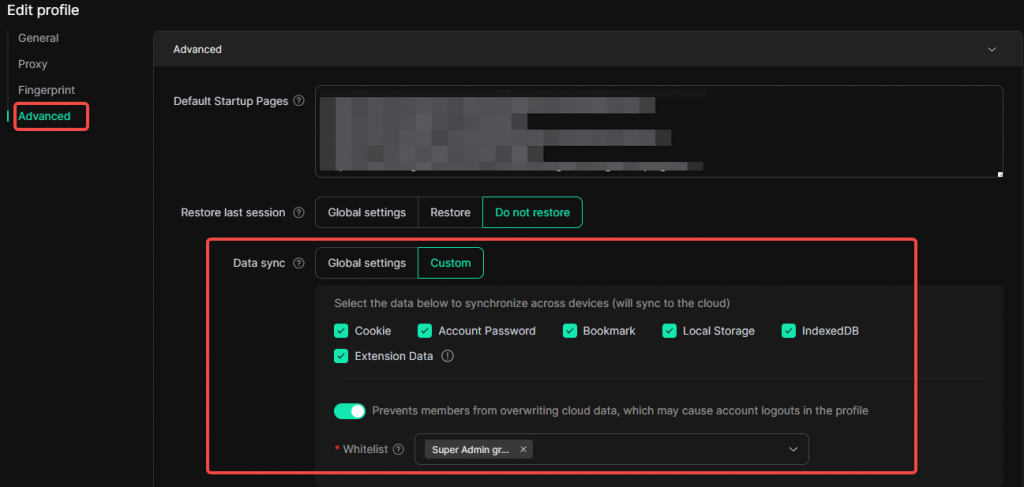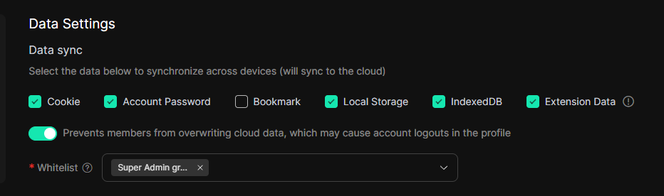 - Data Syn Settings For Individual Profile: Edit specific browser profiles to enable data synchronization for those environments only. If not set individually, the default global data sync settings will apply.