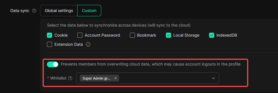 - This setting ensures that only the account data of members within the whitelist (e.g., Super Admins) is synchronized to the clould, preventing the cloud login data from being corrupted and ensuring stable login states.
