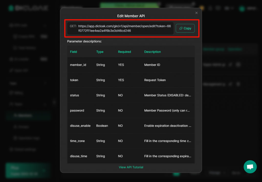 | member_id | String | Yes | Member ID (When creating a member through the API, the response result contains the member ID, or it can be seen in the DICloak software [Member List]) |