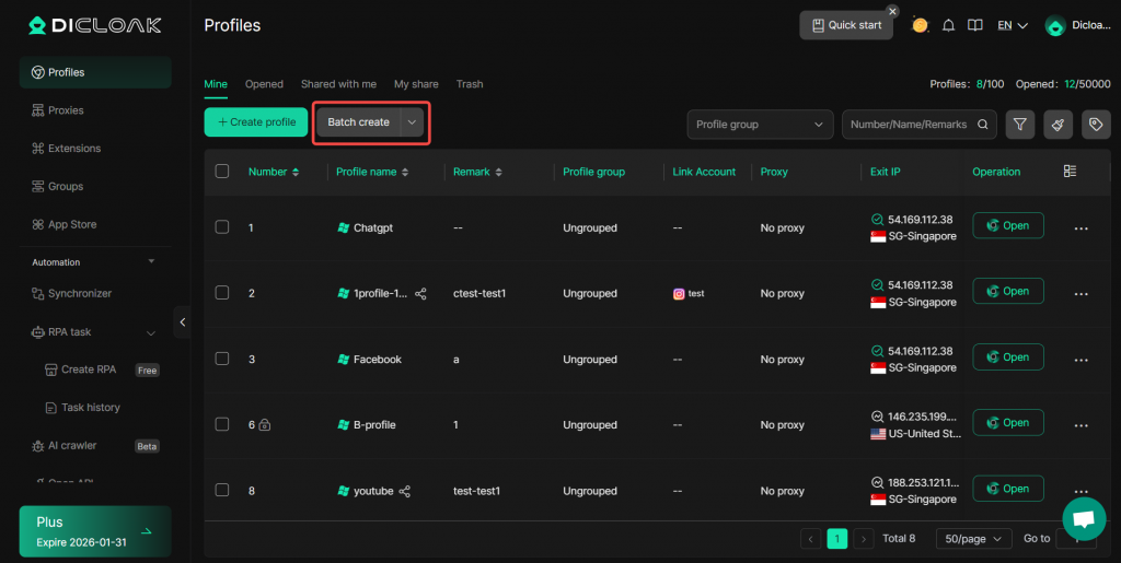 3. Batch Open / Close Browser Profiles