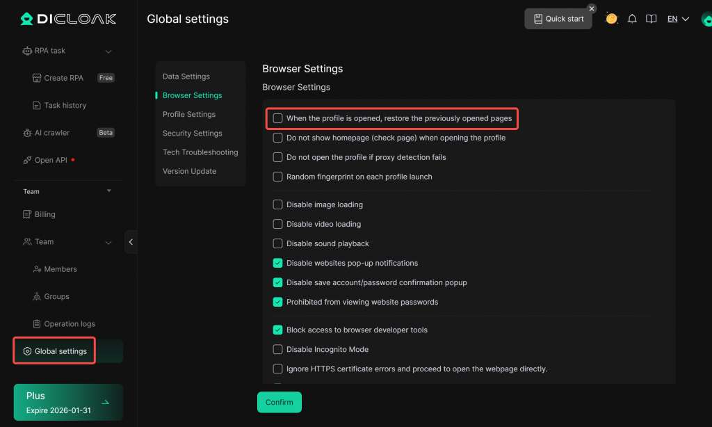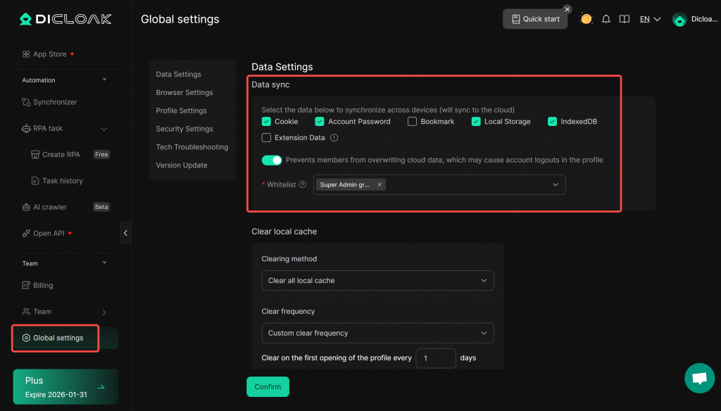 We recommend subscribing to the Plus plan to manage e-commerce accounts, as it offers enhanced automation features and supports internal members logging in from multiple devices at the same time. For more details on paid plans, please visit the DICloak pricing page.