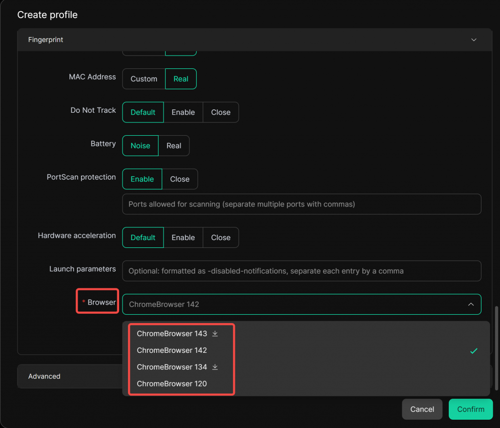 • Configure Fingerprint: Adjust the fingerprint settings according to your needs, such as OS/UA, etc. (The default fingerprint usually suffices).