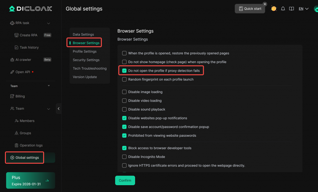 5.3 Prevent Browser Profile Opening When Proxy Detection Failure