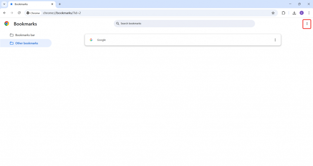 - Open the bookmark manager page in Chrome (chrome://bookmarks/), click the three dots in the upper-right corner, and select Export bookmarks.