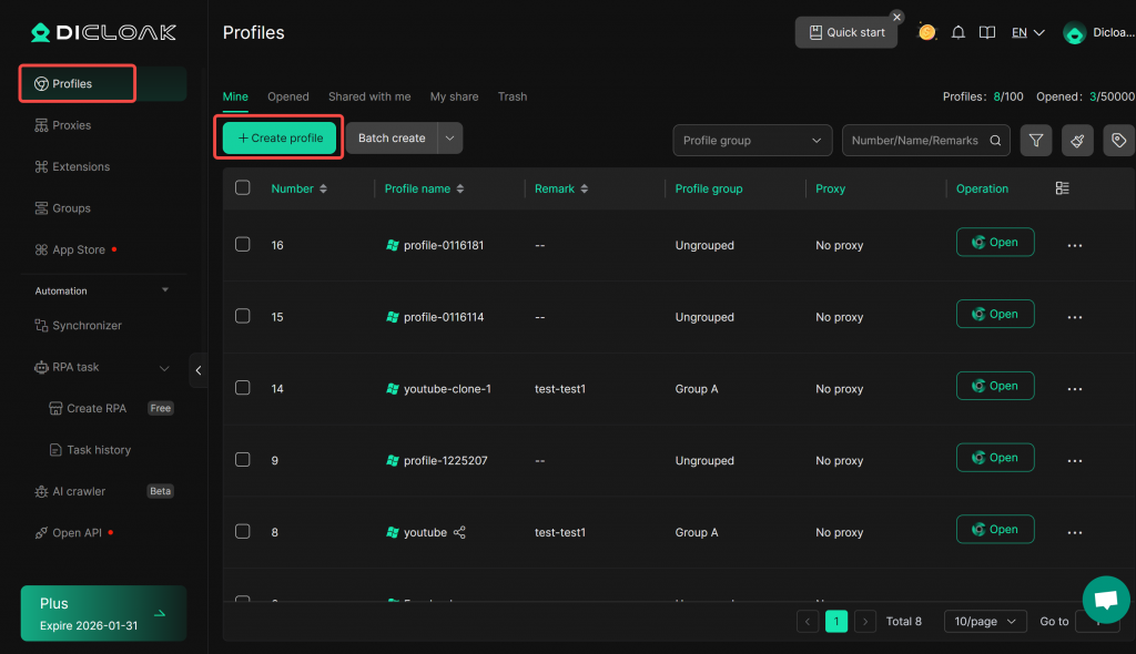 DICloak provides a comprehensive solution for shared account scenarios, allowing multiple members to quickly and securely use the same shared account without triggering the platform’s risk control mechanisms. With DICloak, administrators can quickly configure the browser profiles, input shared account details, invite members to use the shared account, and simultaneously prevent the leakage of account passwords and Cookie data. Below is the detailed operation guide.