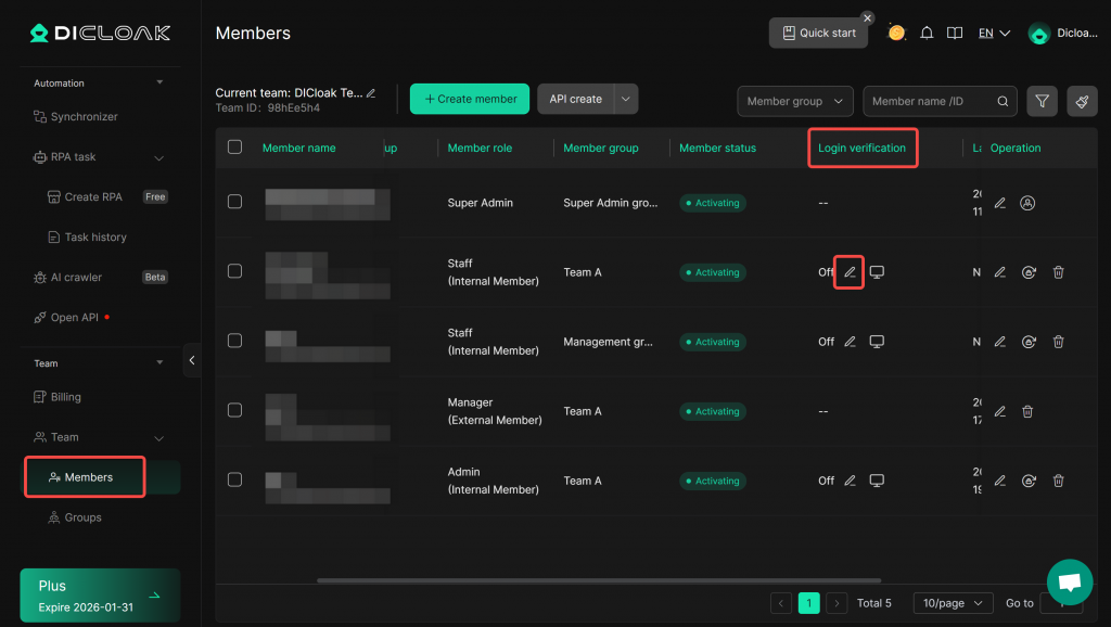 Within the Members, enable login verification for members. When logging in, members must obtain a one-time verification code from the administrator. This prevents members from sharing their accounts with others.