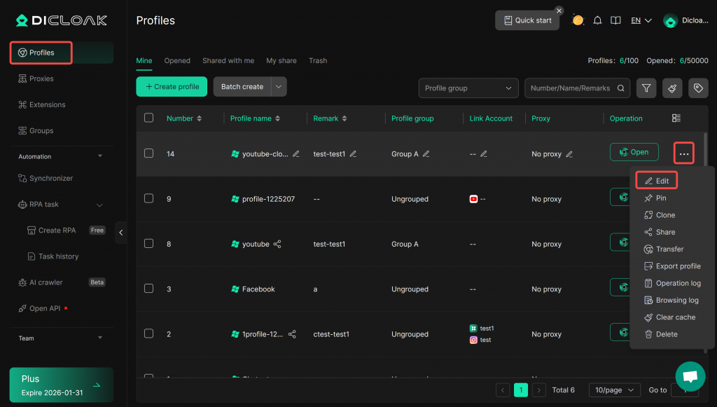 In [Profiles], “Edit” a profile.