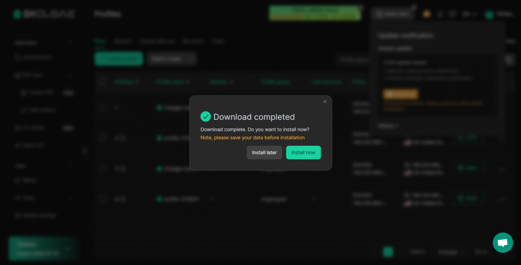 When members log in and a non-latest version is detected, the installation package is downloaded automatically.