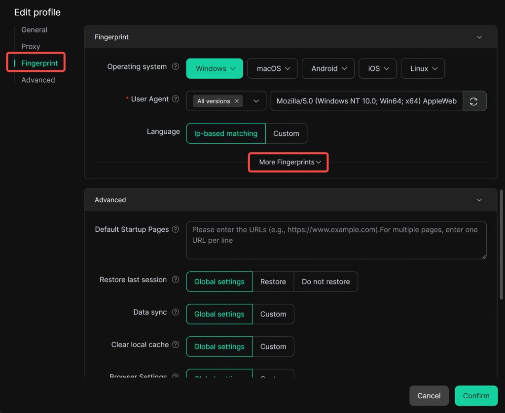 2. On the editing page, navigate to the “Fingerprint Settings” module and click “More Fingerprint”.