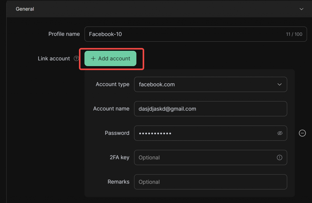 When you use data center IPs or low-quality proxy IPs to log in to Facebook, frequently change the login IP addresses, or access multiple Facebook accounts through the same IP, these behaviors can increase the risk of your Facebook accounts being banned. Important Note: It’s advised to choose static residential proxies corresponding to the country or region of your Facebook account. For example, if your Facebook account is based in the U.S., it is recommended to configure a U.S. static residential proxy IP . Please note that if you do not configure a proxy, the profile will use your local device’s network and will not achieve IP isolation.