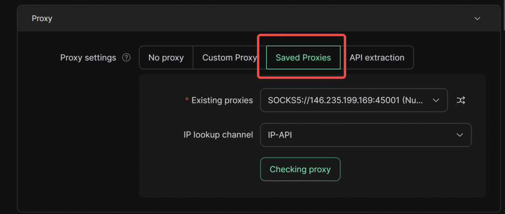 - Create Proxy: Go to [Proxies] to create a proxy.