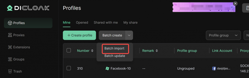 DICloak currently supports creating individual Facebook browser profiles and importing Facebook profiles in bulk. You can choose the method that best suits your situation.