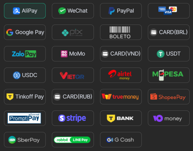 DICloak currently supports the following payment methods. If your preferred payment method is not listed, please contact us for further assistance.