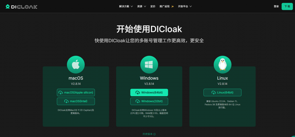 - DICloak下载地址:点击这里下载,目前DICloak支持在Windows、MacOS和Linux系统上运行。