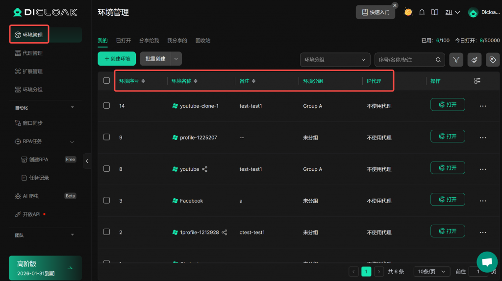 超级管理员可以统一控制成员在环境列表中看到的字段,当共享账号时,可以设置不让成员看到多余的字段。如果您是免费版本,您需升级至任一付费版本来使用此功能。