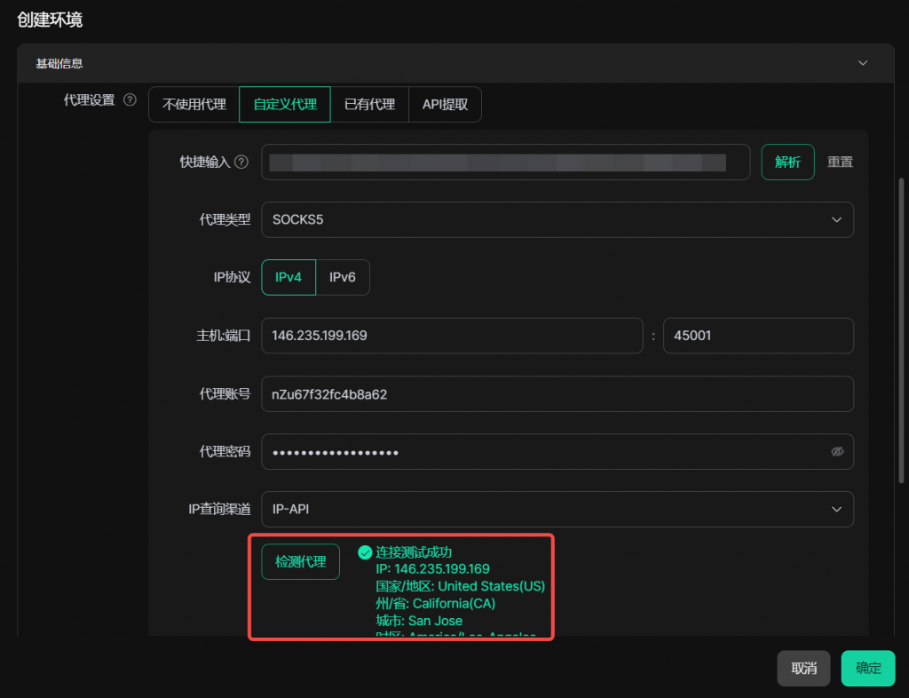如果您不想您真实的IP地址被检测到,那么您在创建新的浏览器环境时需要进行代理配置。