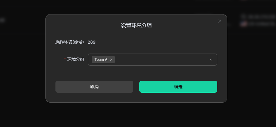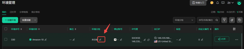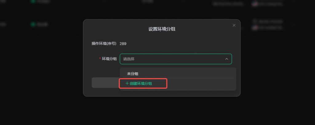 • 前往环境列表为浏览器环境创建并选择对应的环境分组并保存设置