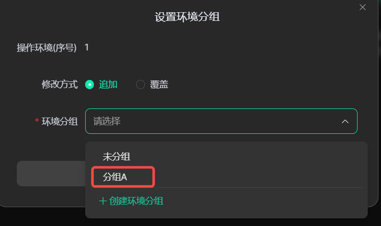 - 选择对应的环境分组,也可以在此处直接创建环境分组