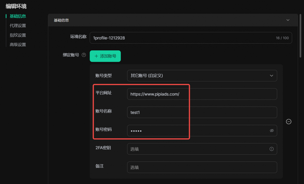 • 2FA密钥(选填):如对应工具/平台登录时需2FA验证,可在平台获取2FA密钥填入此处,成员则可在浏览器检测页自动获取2FA验证码