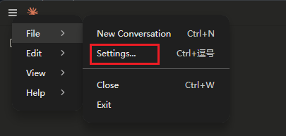 打开 Claude 桌面应用程序。在顶部菜单栏中,点击“Claude”,然后选择“设置…”。