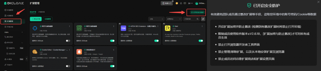 - 可以对浏览器环境中的cookie信息进行加密,禁止成员用不合规手段盗取账号的登录cookie,盗窃账号【可以联系DICloak专属客服开启相关的功能】