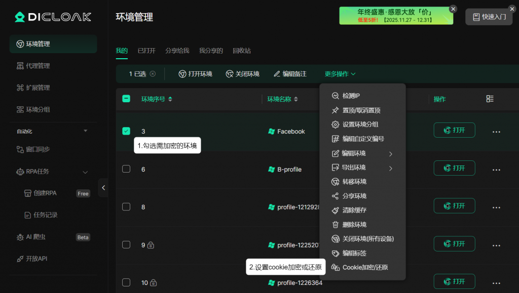 通过cookie加密增强功能,禁止所有成员查看与拷贝环境中的cookie,并对cookie内容进行全方位加密升级,以避免工具账号被盗取。
