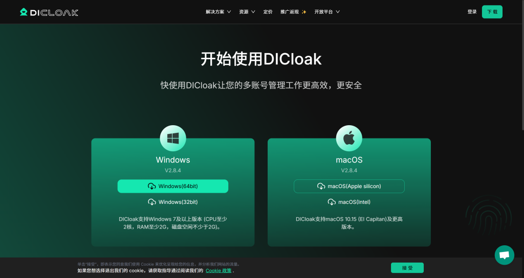 1)请到DICloak官网下载和安装最新版本的浏览器