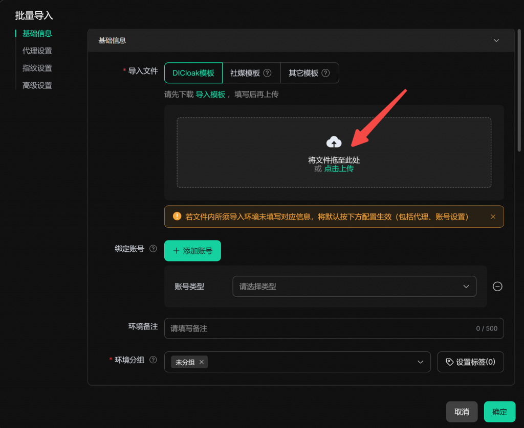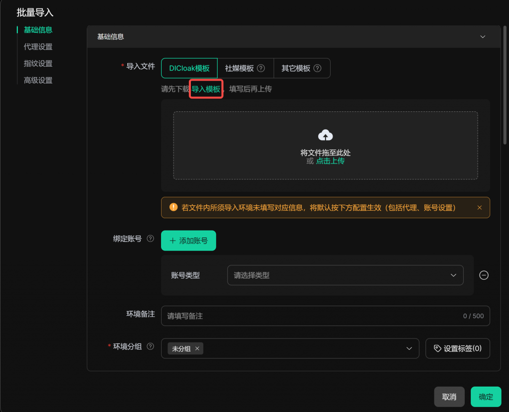- 将保存好的【导入模板】上传,即可完成批量的账号信息与代理信息的导入。