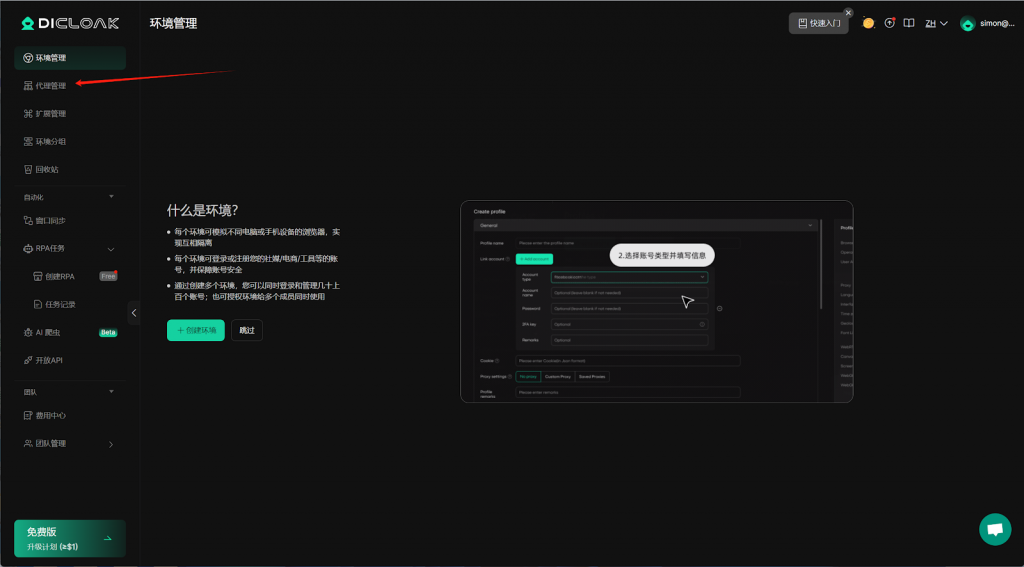 2.1进入 DICloak,点击“代理管理”,我们需要先将 QuarkIP 的代理导入到 DICloak 中