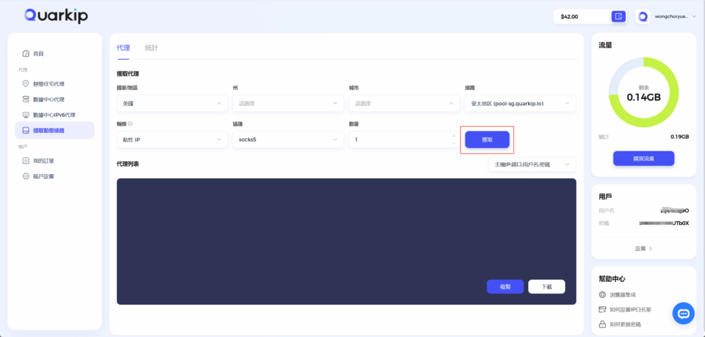 - 数量:如果你需要多条代理连接信息(例如配置多个指纹浏览器环境)则选择对应数量,不然1条就够了