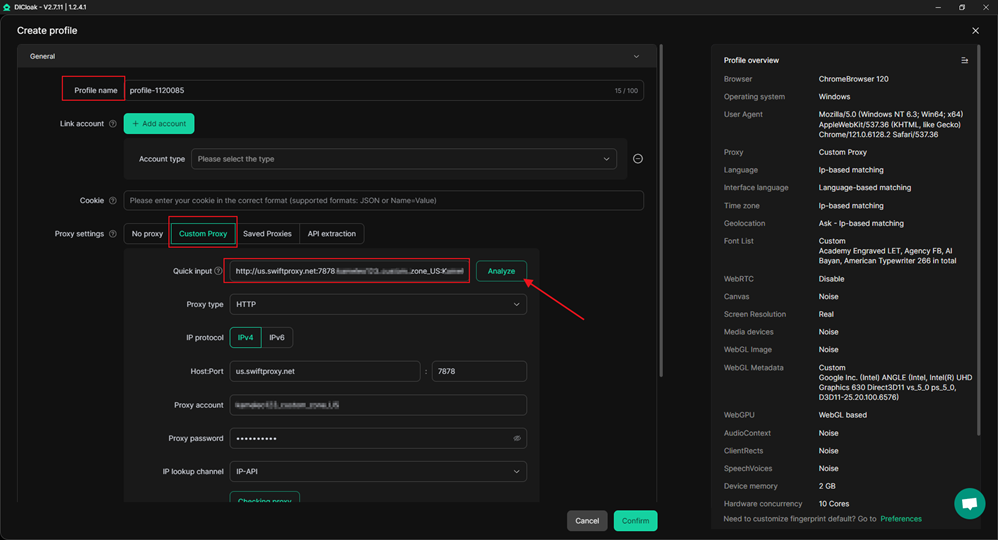 步骤2:配置代理到DICloak指纹浏览器